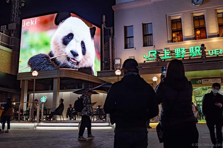 "Ueno Hirokochikou Vision" will begin airing on Wednesday, January 24, 2024. Currently, timekeeping content and original 2D and 3D content are broadcast regularly on a 10-minute cycle. We will continue to display colorful content and provide information suitable for the daily life of passengers getting on and off the bus. Even after the construction is over, Cima will continue to carry out timely and accurate maintenance so that the Ueno Hirokokiguchi Vision will be loved by everyone for a long time to come.
