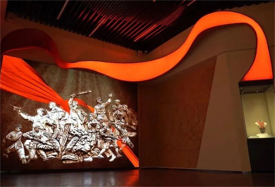 "The red ribbon" project has the most complex real-life special-shaped display system in the industry, including nearly 100 creative display products such as cones, arcs, stacks, and matrix lifts. It truly restores the trench packaging, and the stalagmite shapes pour down... creating a A space full of war atmosphere allows the audience to immersively experience the story of the Long March and understand the spirit of the Long March.