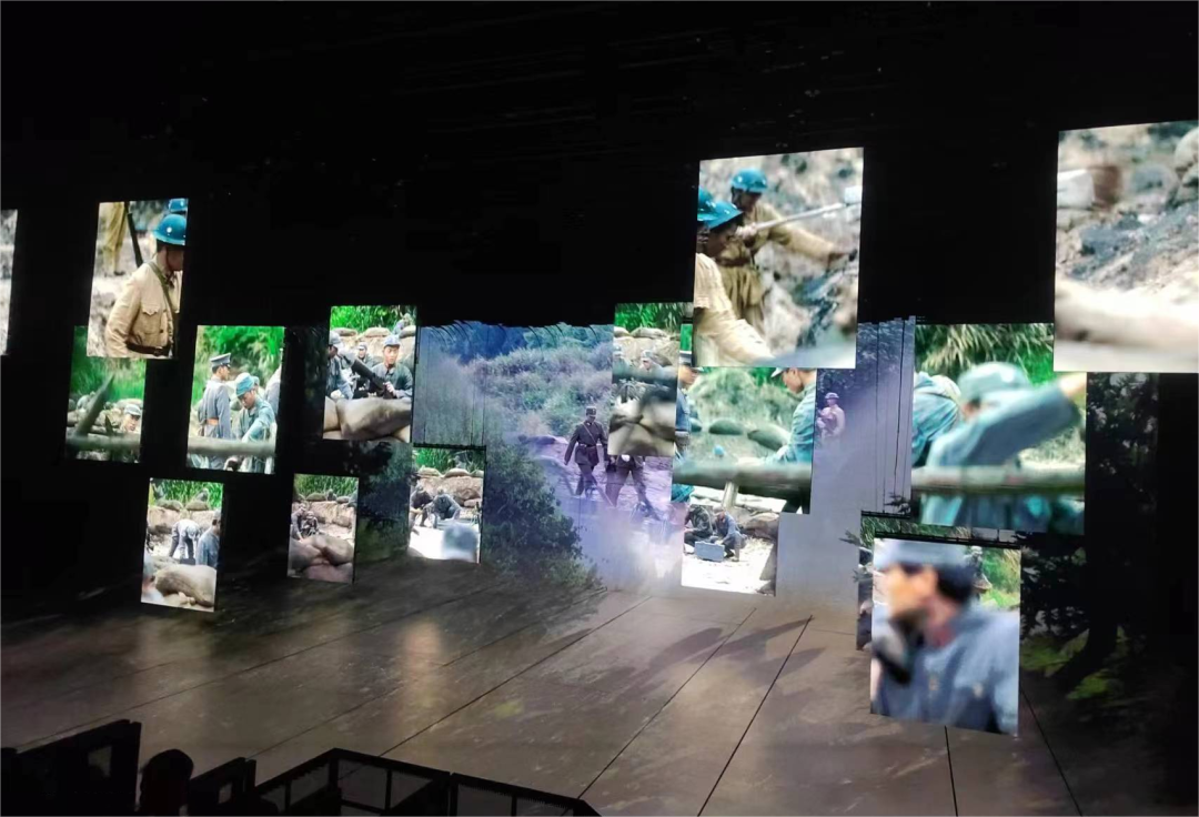 在第五次反围剿展区,利亚德的异形拼接屏助力讲述红军从五次反"围剿"到突破数道封锁线后"血战湘江"的悲壮历程,展现了红军不怕牺牲、浴血奋战的伟大精神。