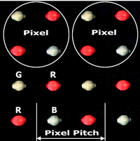 For the first type of screen, individual LEDs of different colors are combined into groups of several blocks. Each such group forms a pixel. There is at least one red, blue and green LED in a group. By mixing these three basic colors, you can get the entire spectrum. The screens made with RGB technology are brighter and are specially designed for outdoor use.