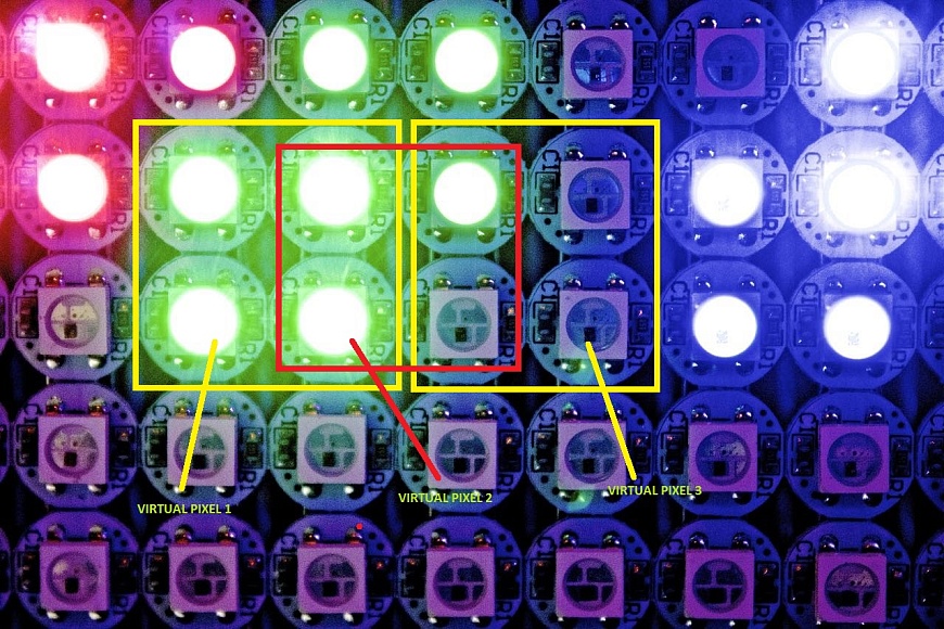 The LEDs on the screen correspond to pixels, but unlike LCD screens, the pixels of the LED screen are virtual, that is, the pixels are virtual. LEDs of the same color can be part of multiple virtual pixels. This feature allows you to get twice the image resolution.