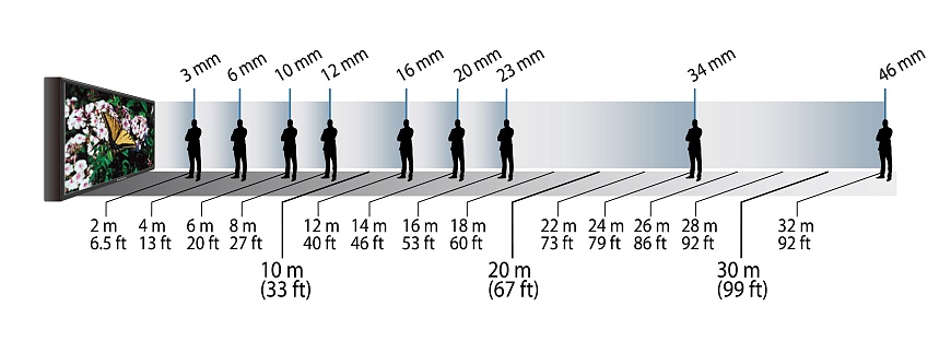 As mentioned above, large pixel spacing is not necessarily a disadvantage. It all depends on the viewing distance. A simple approximate formula for calculating the minimum observation distance is also given above: