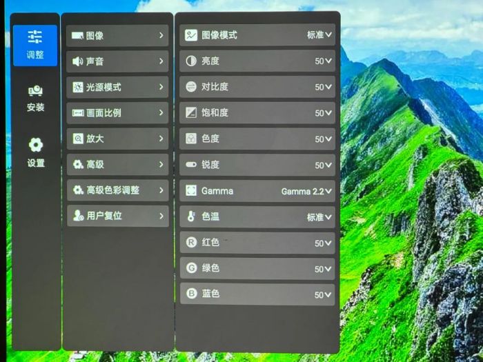 In the image settings, the adjustable options are really rich, and we can make rich matching and fine-tuning. Not only are the image modes preset, but the color temperature, color space, etc. are also preset values. You can directly switch and select them, and then use brightness, color, chroma, sharpness and other parameters to achieve the desired final effect.