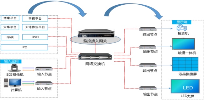 With the acceleration of my country's informatization construction process, various industries are paying increasing attention to visual dispatch command and control. More and more users expect to integrate operation management, production dispatch, security monitoring, emergency command and other systems to achieve the goal. Remote presentation of large screen signals and interaction between various screens, thereby building a cloud management platform for information sharing.