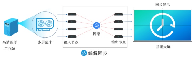 The decoding end unifies clock decoding to ensure the synchronization of the multi-port graphics card output ultra-high definition images on the entire screen.