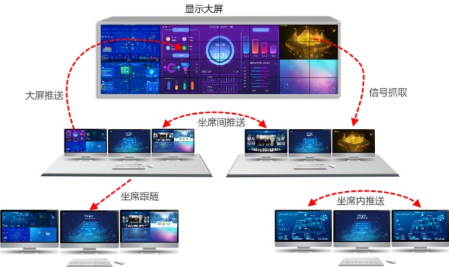 The system collects audio, video, USB keyboard and mouse signals through distributed input node equipment and encodes them into the network switching system to achieve flexible call. Then they are decoded and restored into interactive digital signals through distributed output nodes, further achieving large-screen display, agent collaboration and other application-layer functions. The audio and video collection, transmission, control and display aspects of the image center can be easily connected through a digital network for centralized management and control. It has great flexibility and expansibility, and supports multi-point sharing of audio and video signals, Mobile device preview control, audio and video communication and other functions.