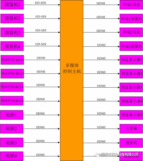 The report-type conference room has a large space and is generally equipped with a rostrum, which can hold report-type, training-type and other related meetings. It mainly includes the following systems:
