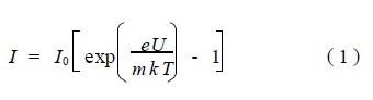 其中,m 为复合因子,I0 为反向饱和电流,UT=kT/e 称为温度电压当量,在热力学温度 T=300K 时,UT=26mV。In wide-gap semiconductors, when I<0.1mA, the spatial recombination current through the deep level in the junction dominates, m=2; when the current increases, the diffusion current dominates, m=1. U is the applied voltage.