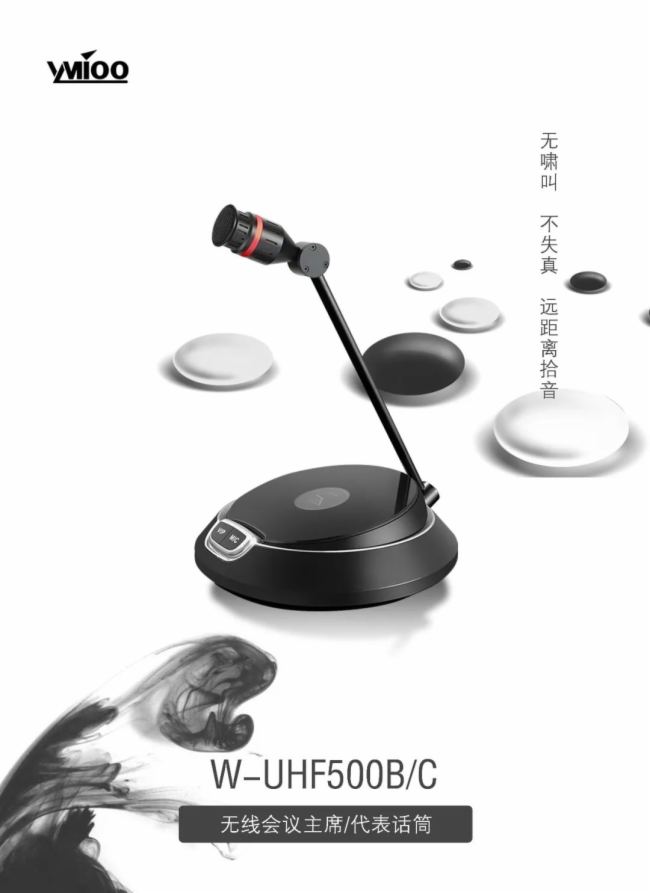 The appearance of the W-UHF500B/C wireless conference chairman/representative microphone adopts an original national style design inspired by Go, showing a solemn, noble and fashionable atmosphere.