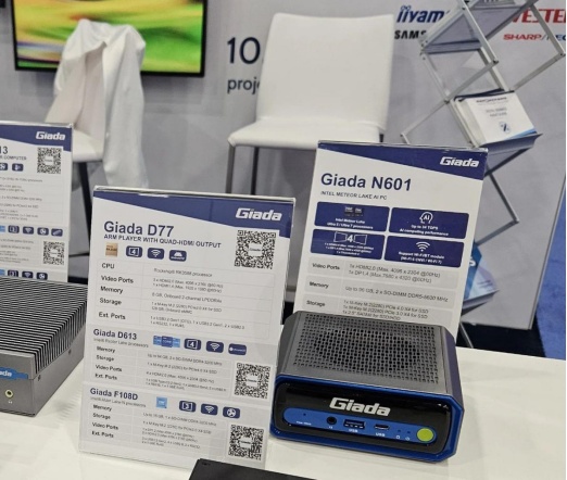Jiehe Technology teamed up with easesgreen to showcase innovative digital signage solutions at the exhibition, focusing onthe AI PC N601, which is equipped with an Intel Meteor Lake processor and has a computing power of up to 34 TOPS. It is suitable for AI image/video editing and creative projects. The AE613 embedded machine isalso eye-catching. It supports Intel's 13th generation Raptor Lake processor, has 8K resolution, three screens alone display, and a silent fanless design. It is an ideal choice for outdoor digital signage. In addition, products such as D77 and VM76 have also been unveiled, combining multiple screen technologies to meet diverse needs.