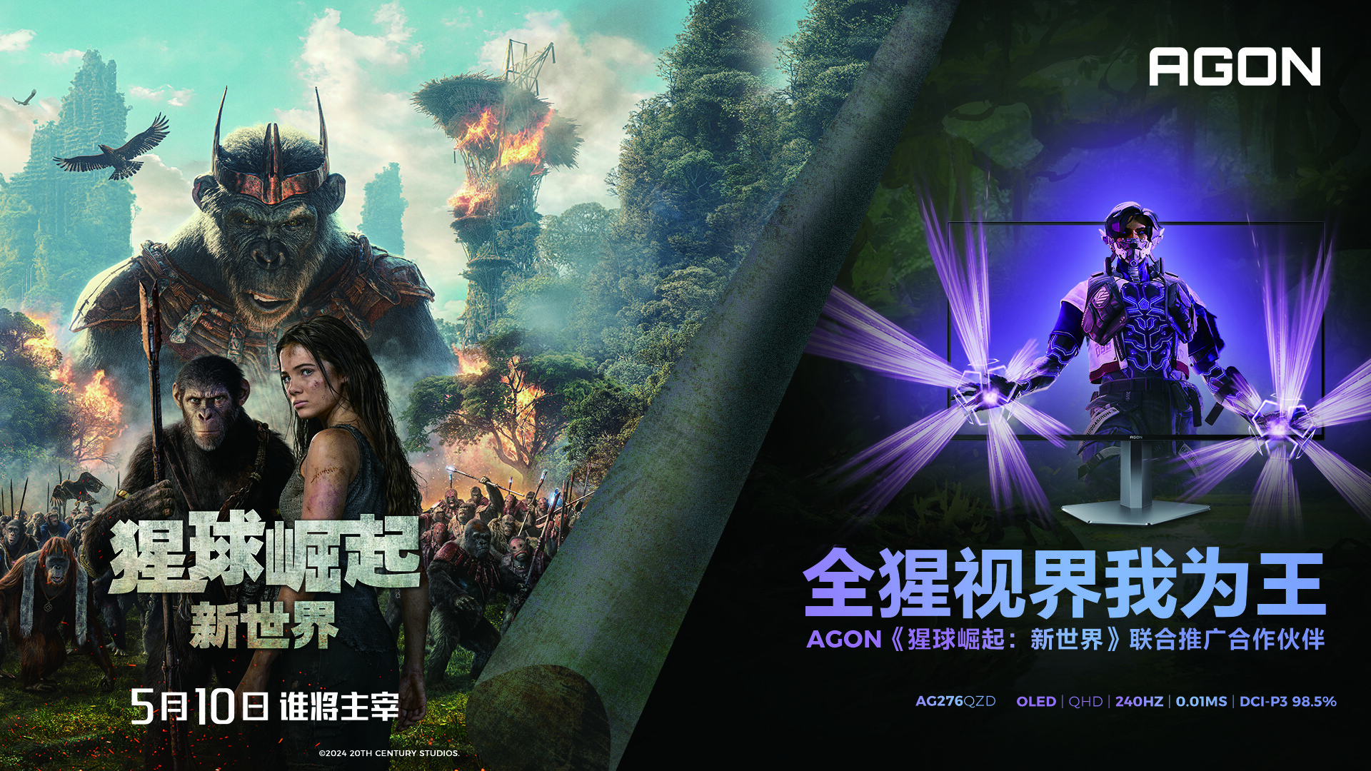 The popular IPcallschampionbrand, and the strong are rushing in both directions! 《猩球崛起:新世界》之所以能在竞争激烈的五月档期中脱颖而出,正是因为其创新的故事情节、卓越的视效技术以及极佳的观众口碑。Just like in the field of e-sports, AGON Aike has successfully reached the leading position in the global e-sports display market with its high-end technology, innovative spirit and good reputation. AGON's