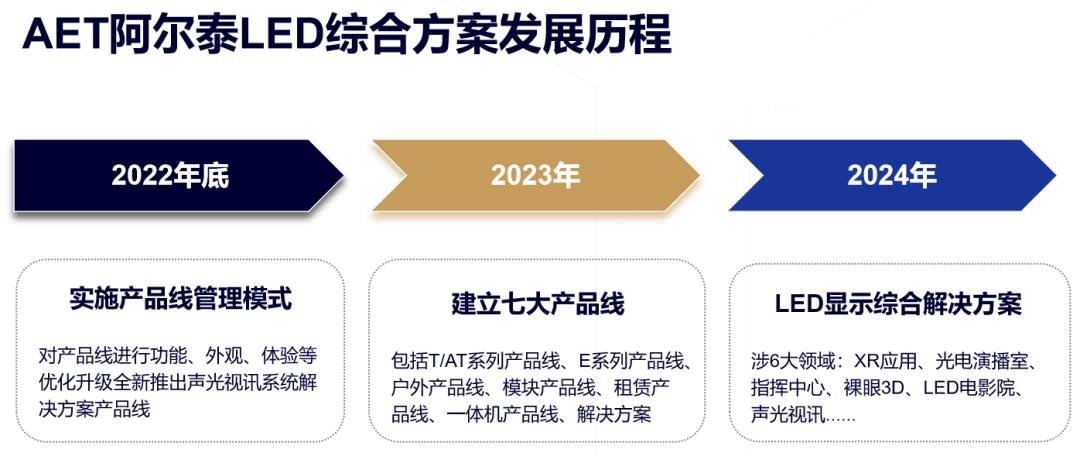 Back at the end of 2022, AET Altai resolutely and resolutely officially implemented the product line management model, just like a smart conductor, carefully polishing and upgrading the product line in all aspects such as functional carving, appearance beautification, and experience optimization. At the same time, like a magician's surprise, it launched a new sound and light video system solution product line, injecting new vitality and charm into its product family; time passed by 2023, and it has successfully built seven major product lines covering the solution product line. It is like a solid seven-star pagoda, standing in the market; as of now, its LED display comprehensive solutions have become like a seamless network, achieving comprehensive coverage of the entire series of products, providing users with meticulous and impeccable all-round service experience.