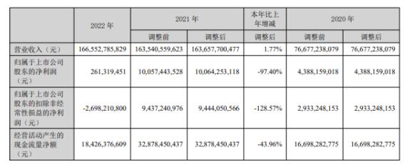 During the reporting period, the net cash flow from operating activities was 43,021,967,305.00 yuan, and the net assets attributable to shareholders of the listed company were 136,089,410,395.00 yuan.